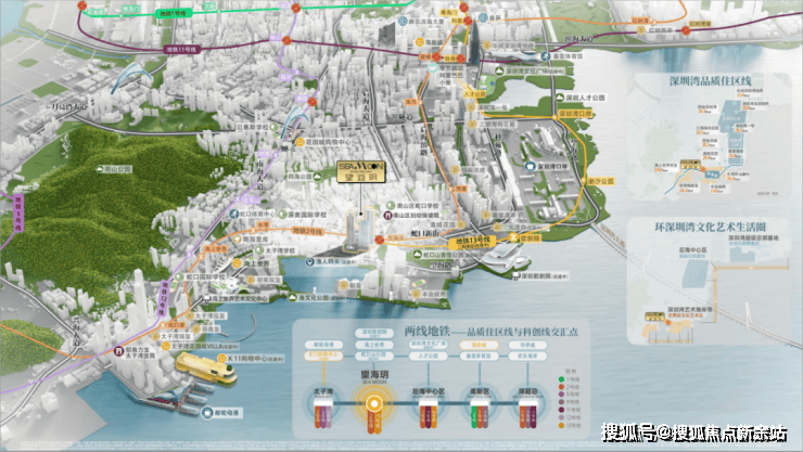 望海玥步行几分钟就可达2号地铁线“东角头站”,2站海上世界,4站后海。预计今年底,13号线二期南延段建成通车,1站地铁直达建设中的深圳歌剧院,3站接驳深圳湾口岸,届时将一线承接港客北上的流量。