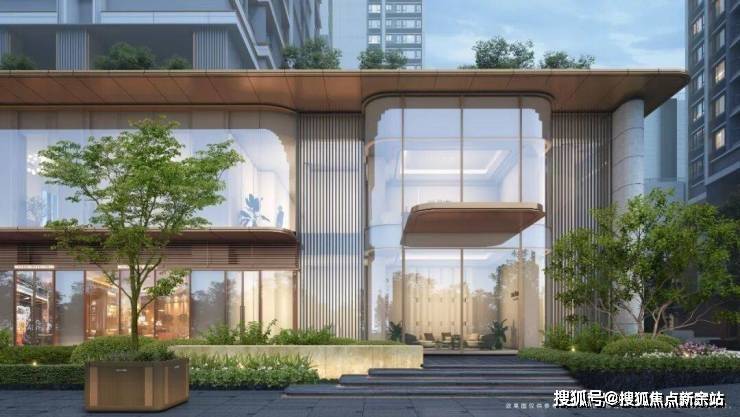 项目采用公建化立面,通过简洁现代的线条配合玻璃展现出极简风格,大堂做到约5.4米挑高,且大面积运用米欧米黄石材,将居者的品位象征和审美价值尽显无疑。