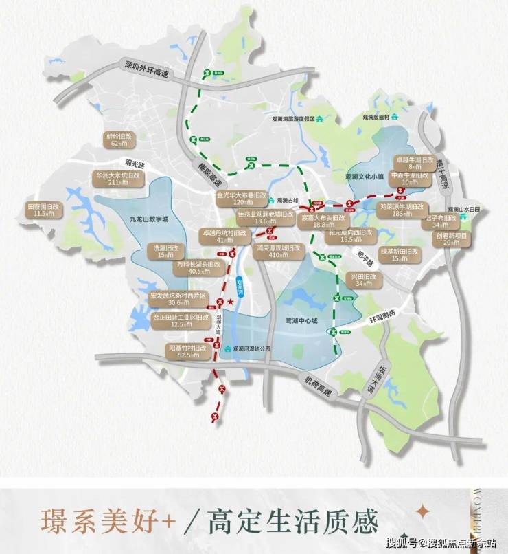 以项目所在鹭湖中心城为主体,构筑龙华"南北双中心"战略,联动观澜文化特色小镇等片区,是龙华面向未来、引领新质生产力发展的新一代中心区。