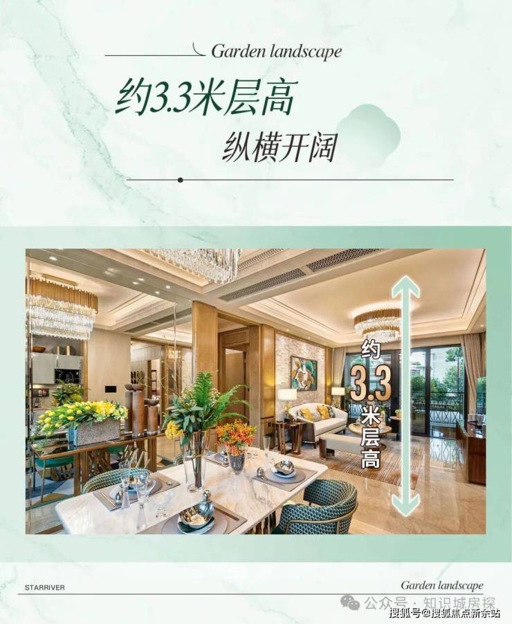 项目在居住空间上做到了片区内绝无仅有的3.3米—3.5米层高。楼栋排布前后纵向间距达百米,充分满足了高净值人群对居住空间感与私密性的要求。