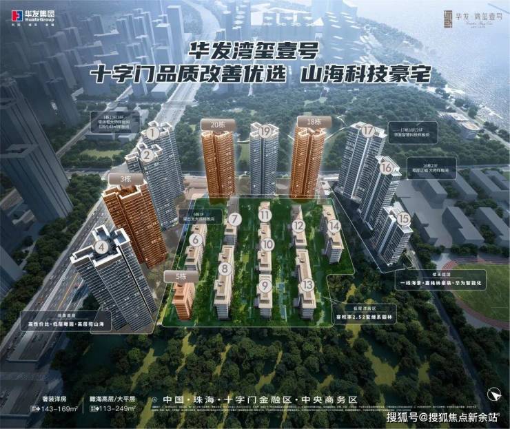 项目整体包含10栋8-10F低密洋房、7栋阔景山海高层、3栋瞰海大平层,共20栋楼。是琴澳滨海CBD最后一块可开发的纯住宅用地,产品为建面113-246㎡四至五房产品,均为高品质精装修交付