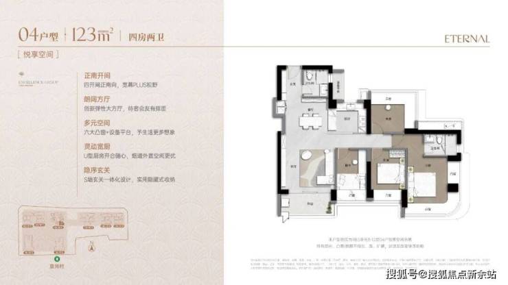 双龙抱珠格局,客餐厅一体化设计,全屋还是多靠飘窗赠送,U型厨房但是能跟客餐厅连为一体,主卧套房设计270°采光!