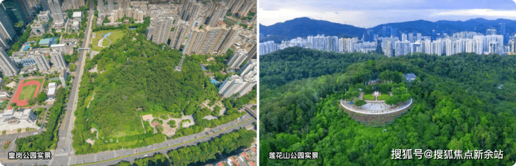 除自身花园和楼下广场外,周边有【皇岗文化广场】、【皇岗公园】、【市民广场】、【莲花山公园】