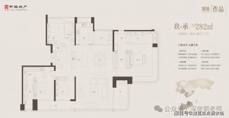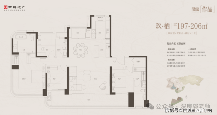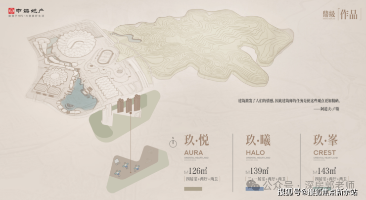 项目分南北两个地块,南地块以豪改为主,而北地块则为纯粹大平层,两个地块用泳池隔开。