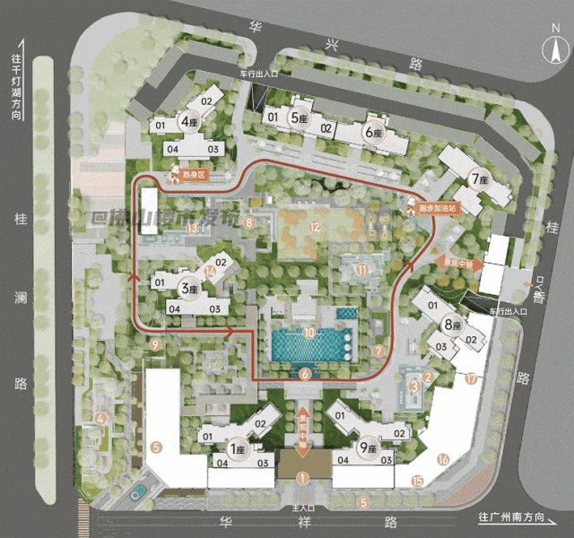 项目采用围合式布局,最大楼间距超110米,给中央园林留足了发挥空间,并保证完整性。