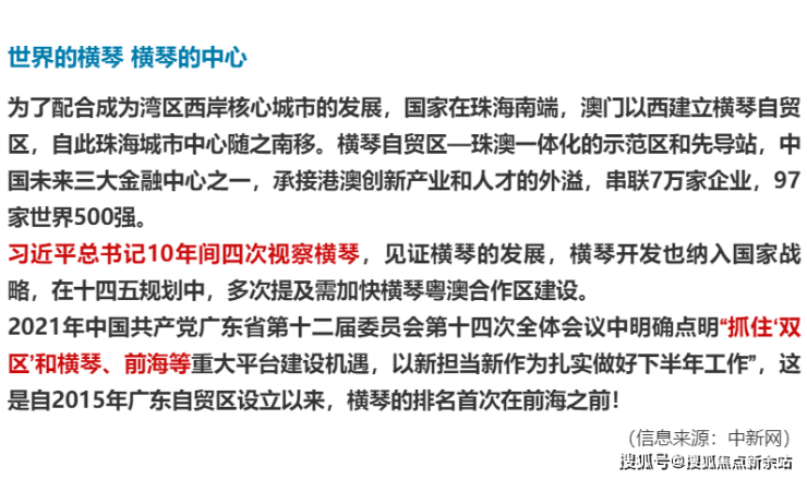 2018年横琴新区一体化发展规划获批,横琴向北,联通珠海腹地,斥资3600亿,与澳门共建横琴一体化区域新中心,而我们项目正处于新中心的核心区组团,规划布局珠海市级商务、金融、贸易、文化、商业等城市服务设施,是重点发展区域,最新的定位是珠海新中心。(信息来源:《横琴与保税区、洪湾、湾仔区一体化发展规划》)