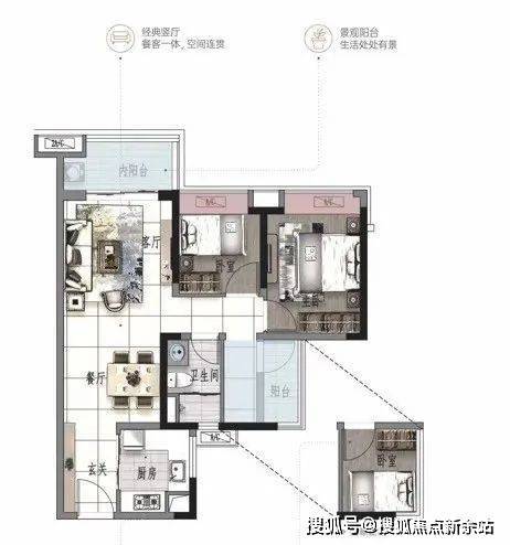 景观大阳台连通次卧--双套房设计,三代同堂更从容