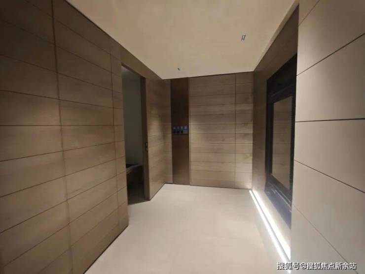 入户大堂,引入人脸识别系统,内部宽敞明亮,搭配高质感岩板、金属格栅和氛围灯,仪式感拉满。