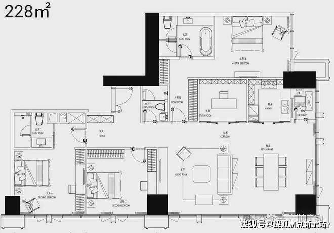 户型面积:68-228㎡,涵盖2至4房