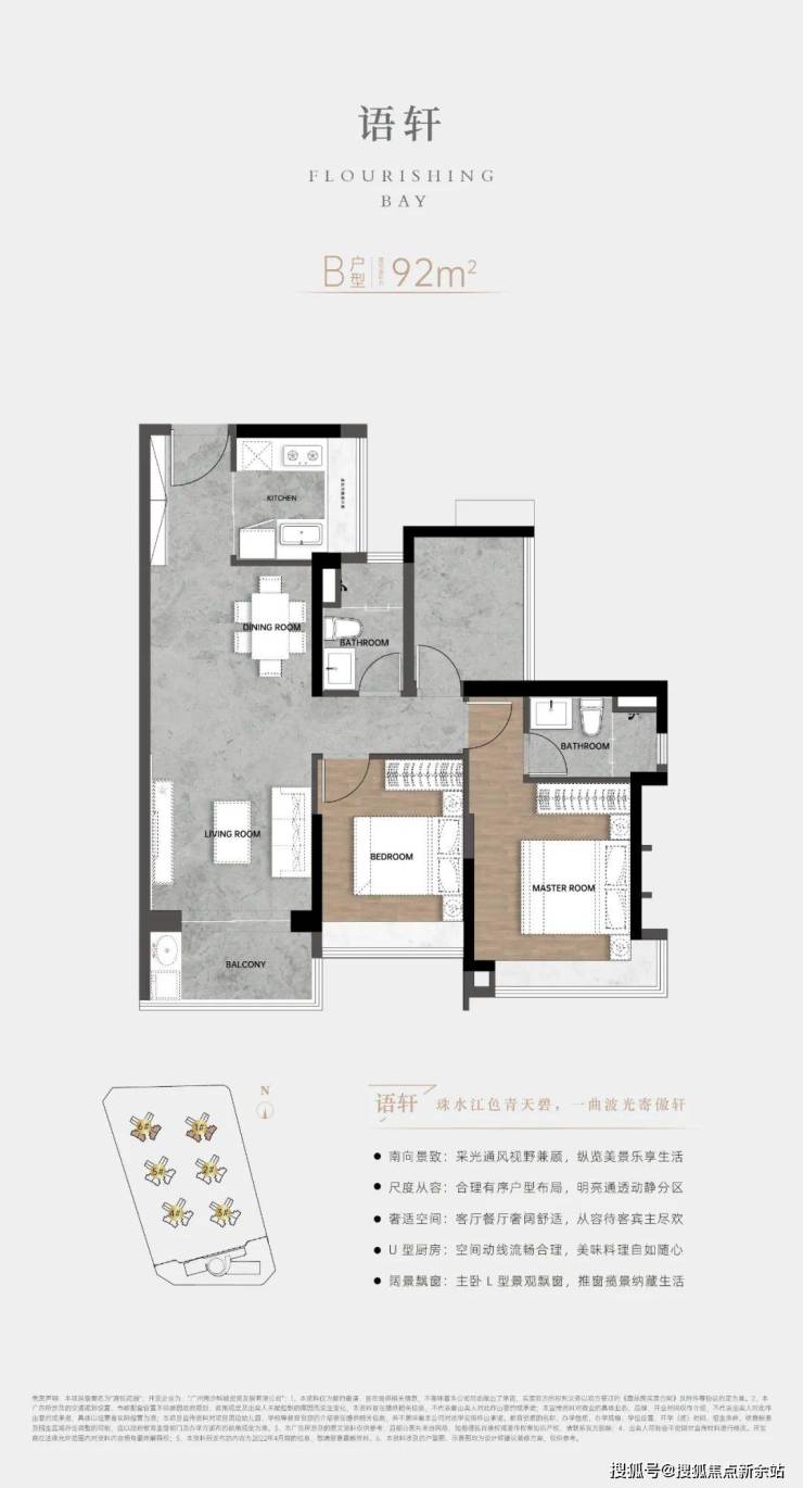 拥有悦览风景的宽敞阳台,南北通透,主卧全景+L形飘窗,动线合理的U形厨房,独立卫浴主卧,干湿分离明卫。