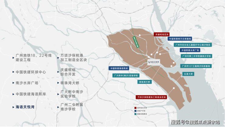 中国铁建,世界500强全球建筑业领军者,央企、国务院国资委管理的特大型建筑企业,全球最具实力、规模的特大型综合建设集团之一。建设项目包括广州地铁18号线、广州地铁22号线、明珠湾大桥、南沙水岸广场、中国铁建海语熙岸,广大附中南沙实验中学、广州二中附属南沙学校等。