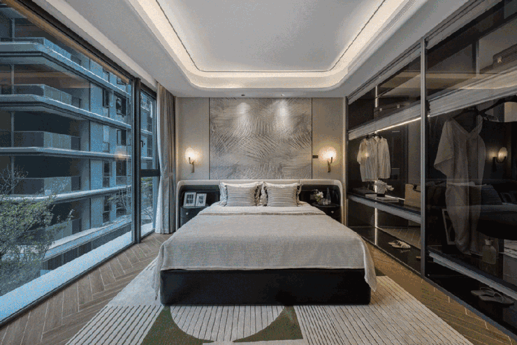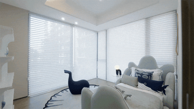 而且其中三间卧室朝南布局, 北向卧室更是带有 L型折叠屏飘窗 ,直接拉开了IMAX巨幕视野,阳光、清风、美景遍布室内每一个角落。
