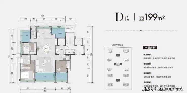 约199㎡户型属于非常 经典的四叶草户型 ,其户型设计独具匠心,相当适配高阶人士。