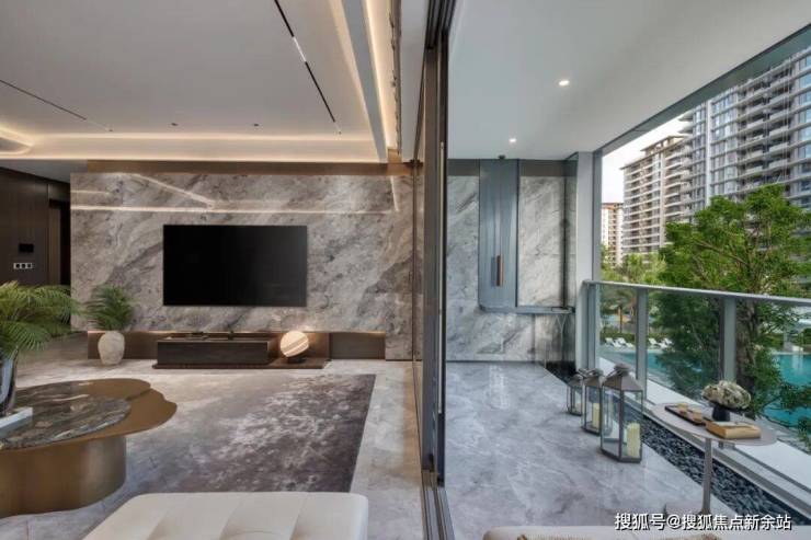 就连背景墙也采用了 一整面西西里翡翠岩板 ,并且是从客厅一直延伸至阳台,成本非常高。