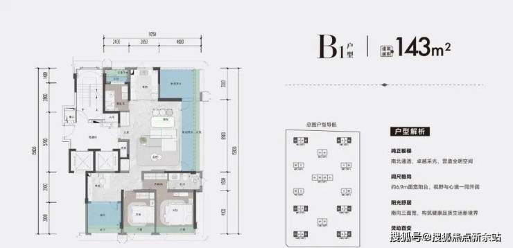 该户型罕见做到 南向整体采光面宽约18.3米+南向开间约8.7米超大会客厅+270°环幕视野。