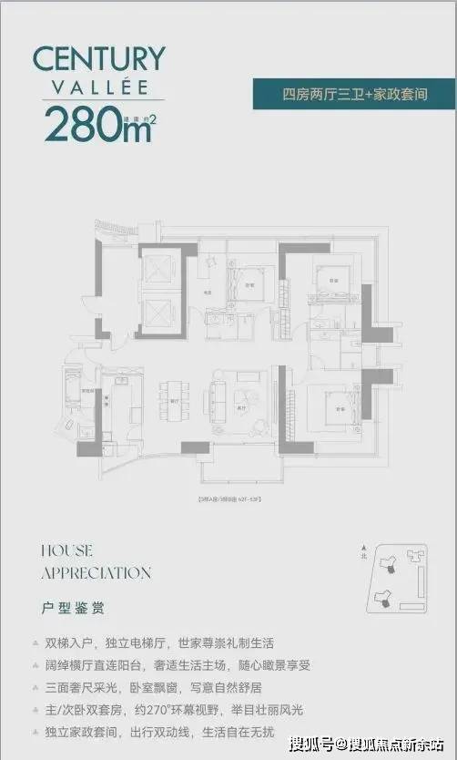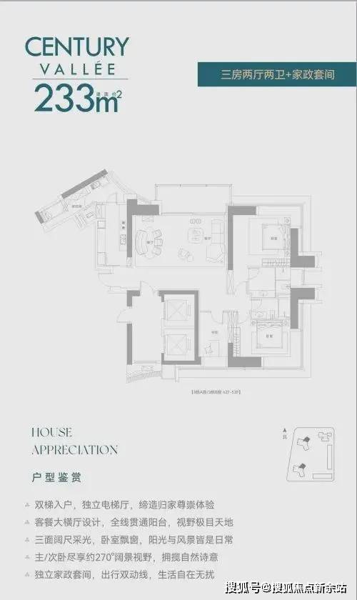 双梯入户保证归家的私密感,客餐大横厅设计,居住舒适度、幸福感将直线上升。三面采光,大尺度奢享更多阳光和惬意,主/次卧自带大飘窗,270°巨幕视野推窗见景。