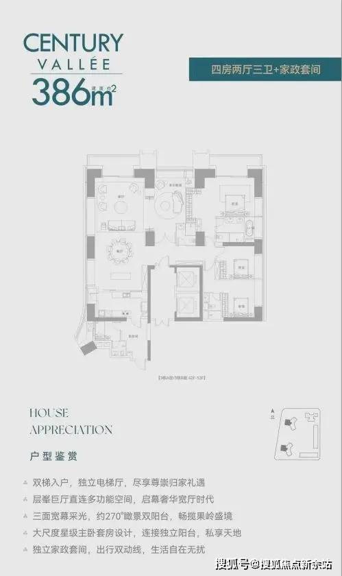 同样的专梯入户,豪宅感扑面而来,尤其是超大宽厅,空间奢阔气场尽显,一厅抵别人一套房。三面宽幕采光设计,所有的采光面都尽可能放大,约270°瞰景双阳台,开窗可见果岭自然风光,星级主卧套房设计,衣帽间+卫浴一应俱全,连接独立阳台,扩大室内视野,增加使用空间。