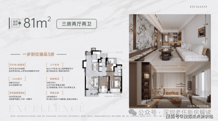 81㎡3房2卫:总价550万左右,实用性小三房产品
