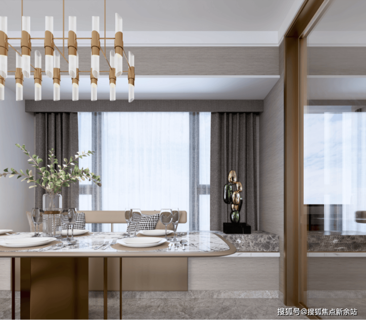 餐客厅一体设置,空间延伸相互借用,提高室内的空间感和利用率。无论是休憩娱乐还是会晤亲友的时候,只够的空间,让生活真正从容有度。