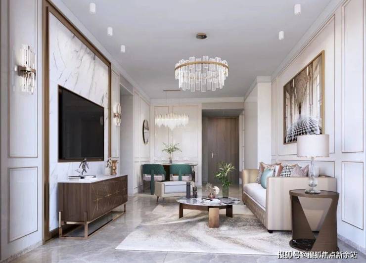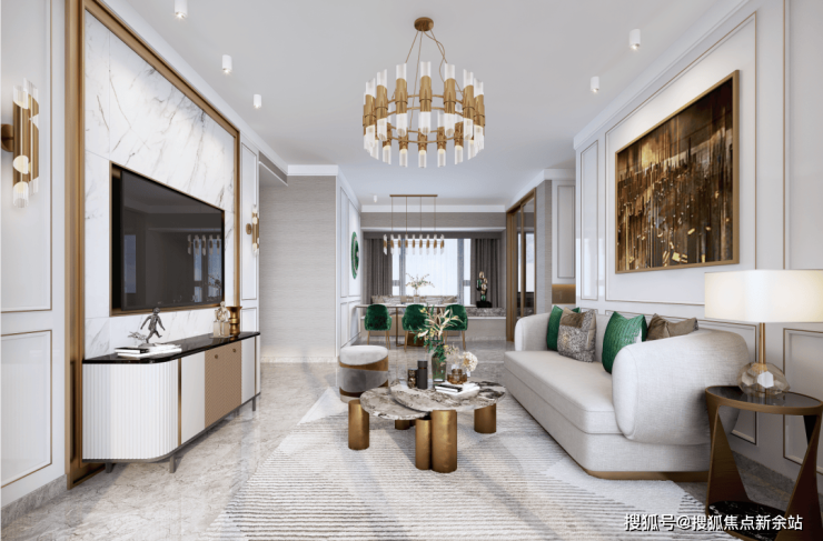 户型整体南北通透,空间舒适开敞。阳光清风自对流,厅堂明媚,亦延展了室内空间,给人以宽敞大气之感。