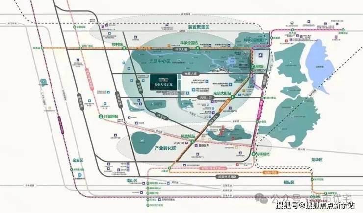 光明科学城占地约208万㎡,配置有深圳国际美术馆、深圳科技馆新馆、科学城体育中心、光明文化艺术中心等市级文体配套。