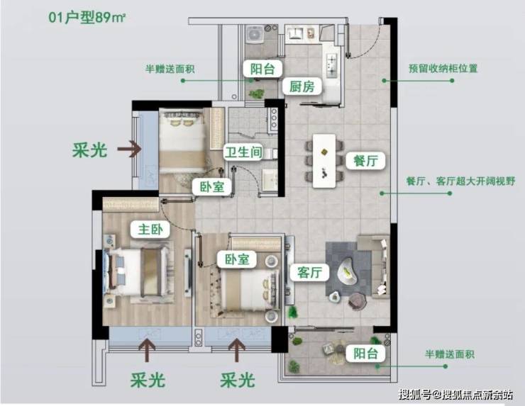 120㎡雙陽台南北對流,四房兩廳兩衛