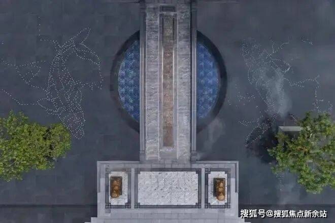 地面曲水流觞蜿蜒成硕大的“玺”字