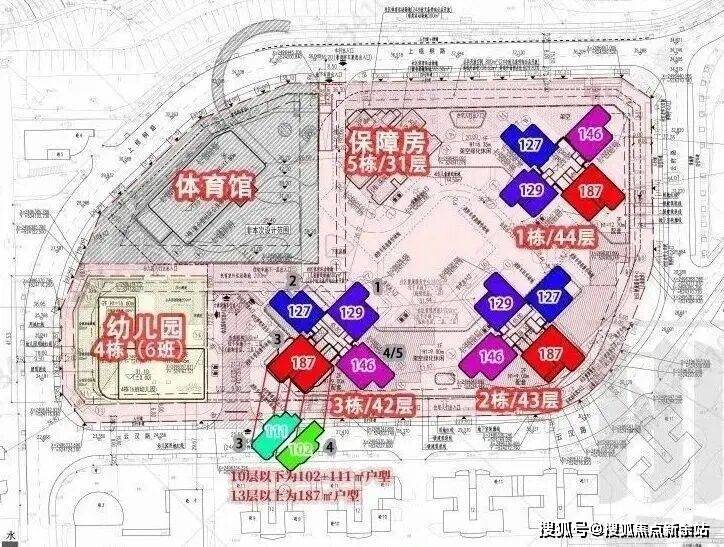 户型区间:102-111㎡三房、127-146㎡四房、187㎡五房,顶复200-285㎡