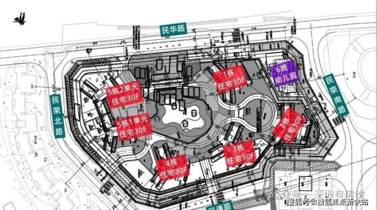 ‖ 规划构成:5栋30层高层住宅(1-5号楼)+1栋3层幼儿园(6号楼)