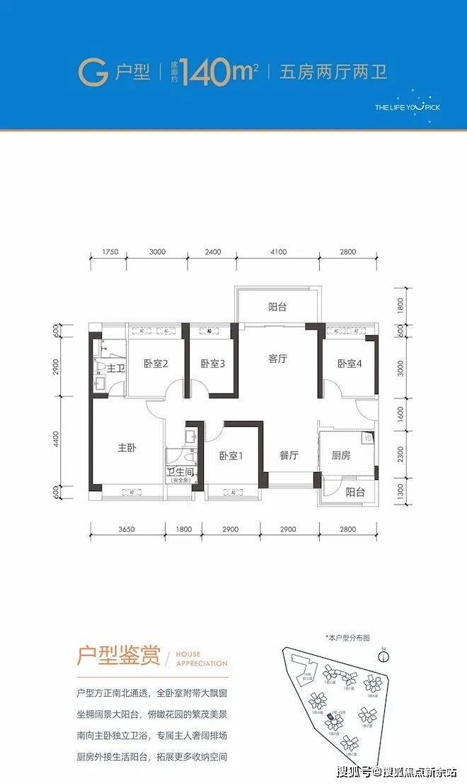 140㎡户型,是该项目建面最大的产品,格局与120㎡户型一致,可看作120㎡户型的放大版,居住舒适性更佳,预算充足且对居住舒适性追求比较高的可以侧重考虑这个户型。