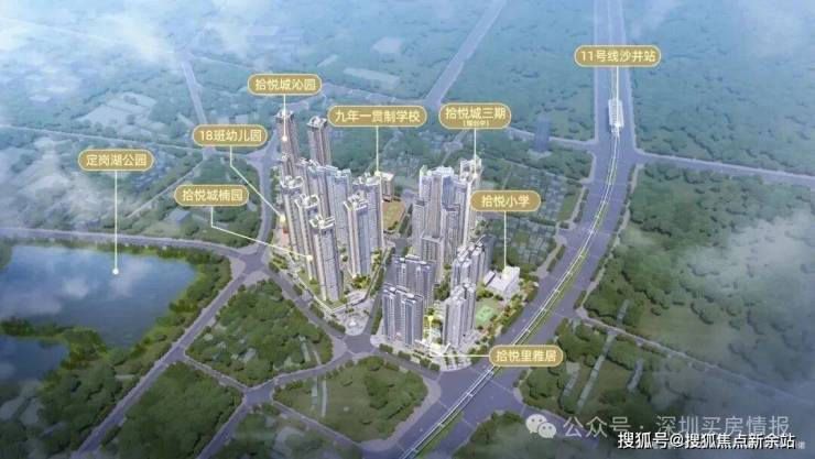 拾悦城二期占地约3.54万㎡,总建面约17万㎡,共规划了14栋30-48层超高层住宅、4栋26-33F高端写字楼及部分商业配套组成,还规划了一所36班九年一贯制学校、一所18班幼儿园。
