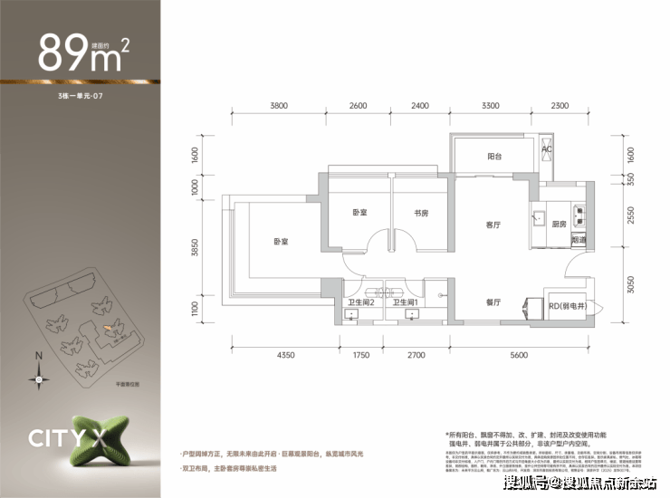 王炸户型 约89㎡3+1房两厅两卫(双娃家庭置业首选)