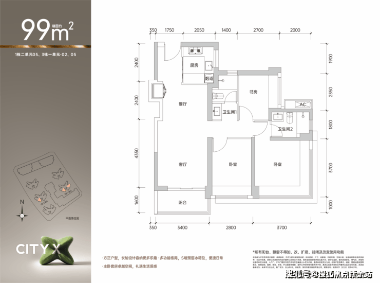 南北通透双厅设计,户型方正百变空间;双卫设计宜居便利,主卧270°宽景采光