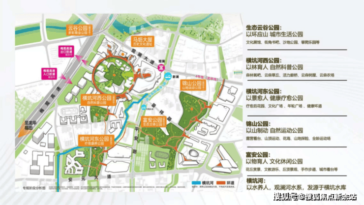 独创规划超3.6km空中连廊,串联5大公园,商业,住区、办公、文化休闲、生态康养等多个特色主题环游路线,超23公顷的生态公园,奢享密度比肩香蜜湖。