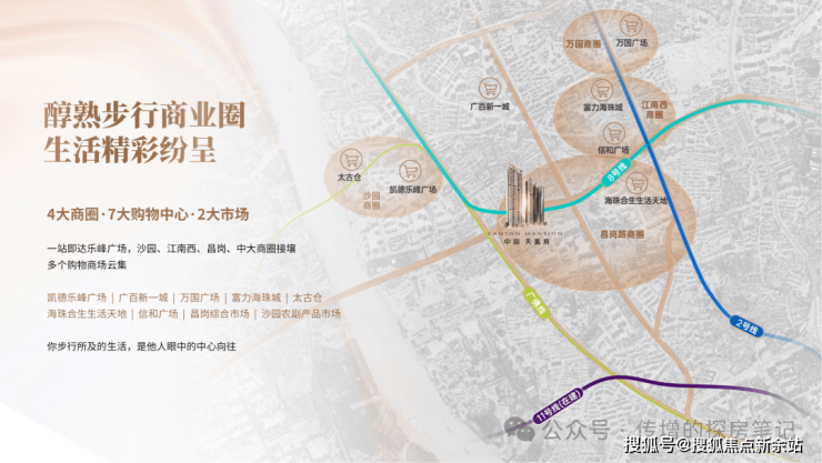 以项目为圆心,500米半径内绘制出震撼商业版图:西接“广州菜篮子”沙园市场,南邻文艺圣地太古仓,东倚凯德乐峰广场与京东MALL,北望广百新一城与富力海珠城。更有饕客天堂宝业路夜市点缀其间,令清代李渔《闲情偶寄》中“饮食之道,脍不如肉,肉不如蔬”的生活美学在此生动演绎。