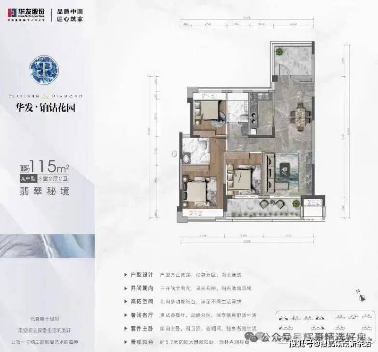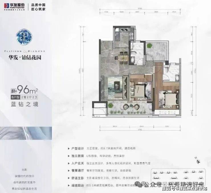 四、户型介绍:臻稀产品—纯板楼设计 南北通透 蓝钻之境—建面约96㎡2+1房2厅2卫