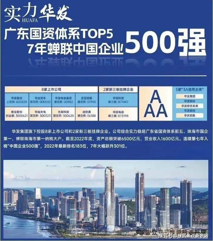 三、三大卖房必看【1】品牌:千亿国企 ,资金雄厚稳健华发华发股份,中国500强企业,珠海综合型龙头国企,2022年销售1202.4亿元,连续3年稳居千亿阵营,“珠海地标,华发匠造”已成为时代共识。绿档房企 安心之选,在国家三道红线政策强力监管下,持续保持绿档,选华发,就是选择了安全和保障。