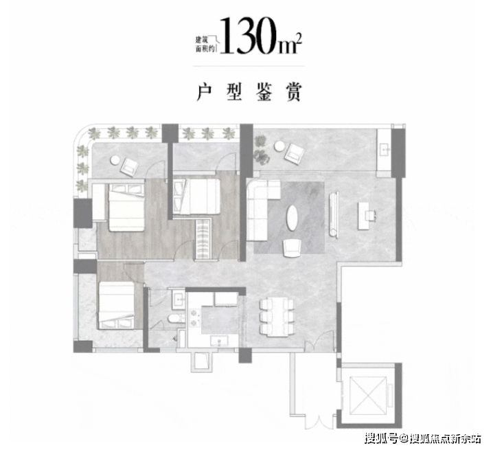 130㎡三房两厅两卫是入门款,总价约 700 万,全明格局设计,客厅连接南向阳台,主卧带独立卫浴,适合三口之家。