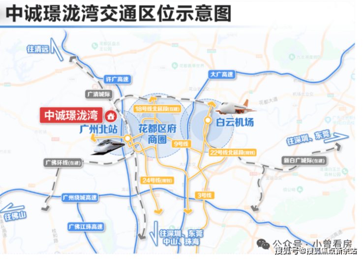 中诚璟泷湾位于广州市花都迎宾大道旁,位踞白云机场+广州北站唯一空铁联运枢纽,约400亿规划建设空铁+免税店双驱动的北站新城核区位。多维交通网络全覆盖,汇聚世界资源,坐拥价值潜力。