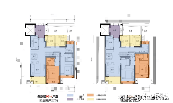 首推:1-5栋,面积95方复式四房两厅两卫,105方复式四房内
