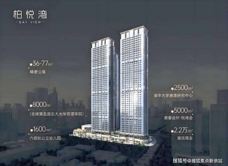 恒裕柏悦湾由2栋47层高公寓与2栋42层商办组成项目自带·约2.2万㎡潮流商业·约5000㎡精英会所·约8000㎡北大光华管理学院(北大光华瑞思楼)·约2500㎡清华大学港澳研究中心·约1600㎡六班制公立幼儿园共同组成约37万㎡垂直综合体——200米深湾超级地标