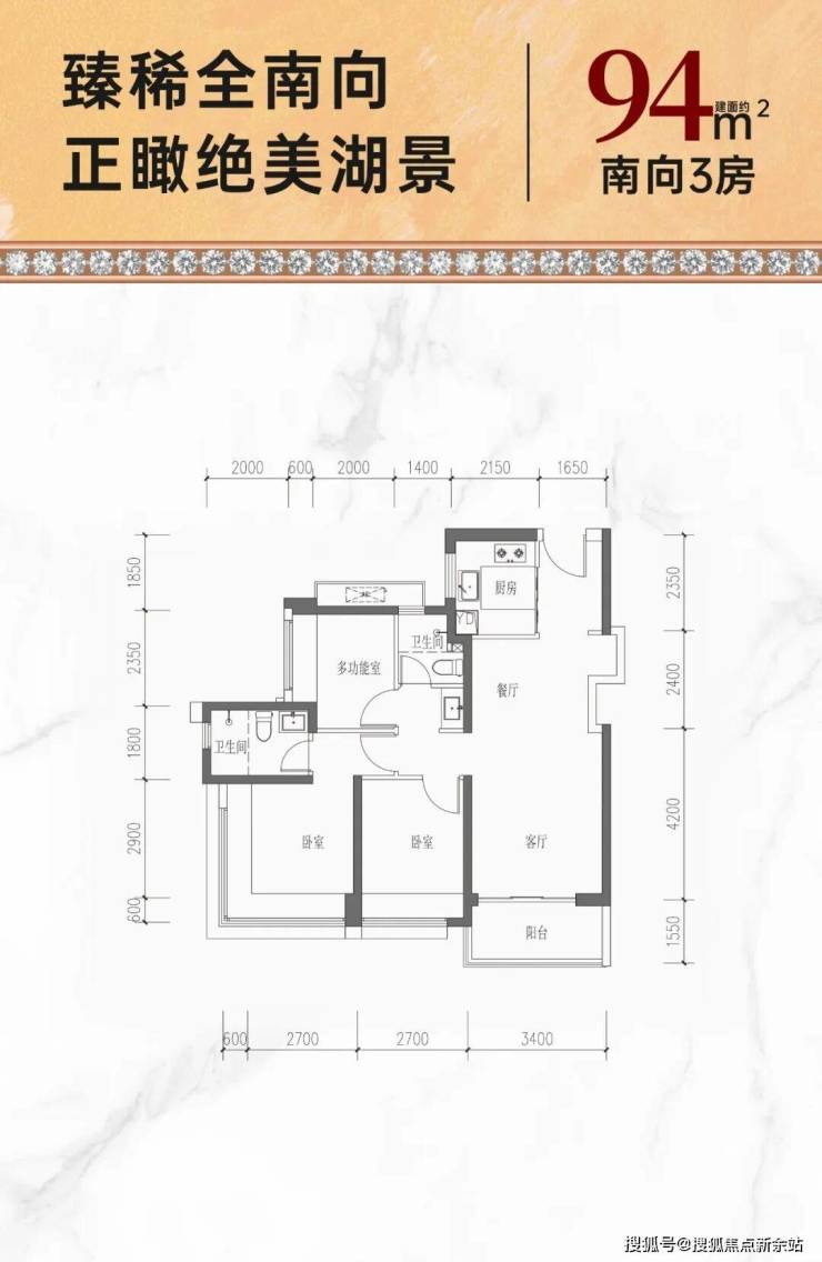 约94㎡南向性价三房:折后单价4.52-4.79万/㎡,总价427-452万
