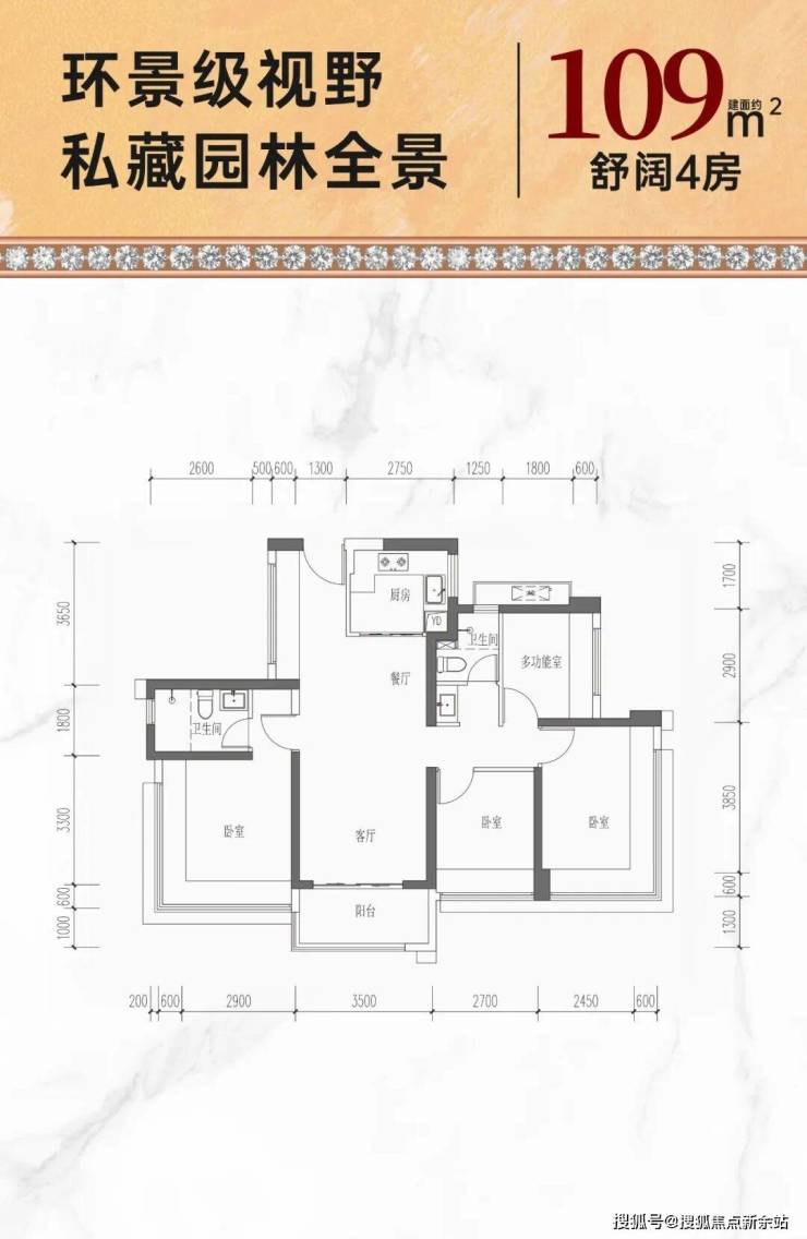 约109㎡双龙抱珠四房:折后单价5.1-5.28万/㎡,总价557-576万