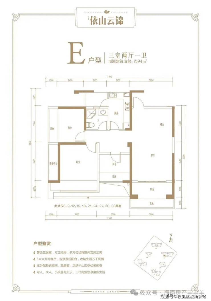 3号楼、6号楼:总层高32层,三梯9户 ,现房