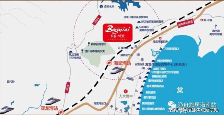 交通:海棠湾高铁站规划中,海棠湾站位于全球第一条环岛高铁海南环岛高铁的东环线路上。