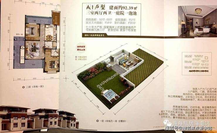 下叠拼A1户型(三房两厅两三卫):最后一排92.39㎡(赠送地下室106㎡+南北庭院59-77㎡)地下一层、地上一层是一户。