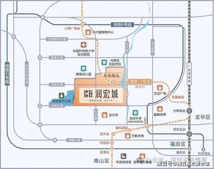 润宏城位于深圳市光明区凤凰街道13号线二期月亮路站附近,由华润置地和宏发集团联合打造,整体规划约382万㎡超大体量城市综合体,集轨道交通、优质教育、城市公园、创新产业、品质居住于一体,打造“宜居、宜业、宜游”都市生态标杆大城。