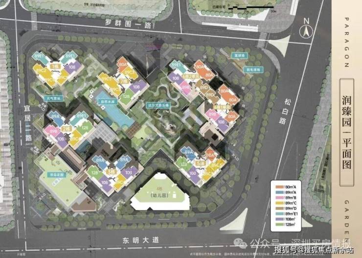 润臻园(2-12地块)位于东明大道和松白路西北侧,规划建筑面积约29万㎡,由7栋高层住宅围合组成。