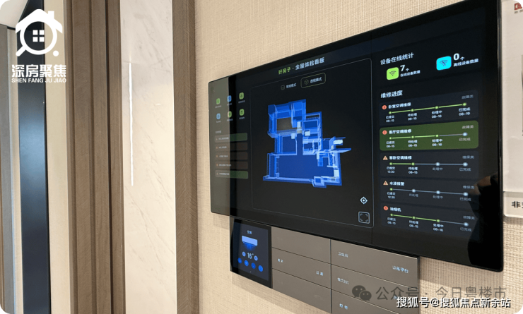 ②中海好房子Living OS系统,除物联物控功能,还拥有多项主动式易发安全隐患检测、预警、干预功能,如可疑访客变声应答门锁,燃气泄漏自动关阀开窗,灶具干烧警报关火;涉水功能间浸水警报关阀;异常用电监管面板提醒;全屋体检系统自动提醒家具&家电需保养&维修,维护进度动态可视化展示,预留有第三方智能家具、家电接口等。