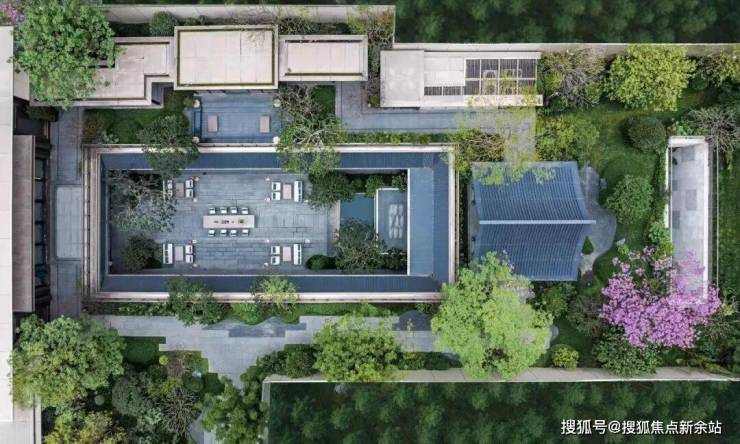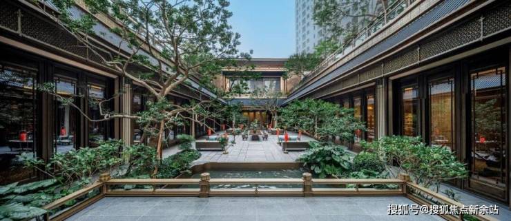名贵花木、景观楼阁,构成「四水归堂」形制。